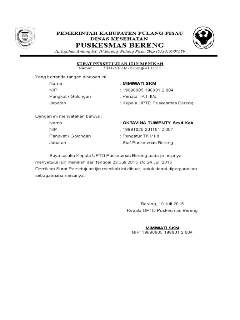 Dengan menikah kita bisa merasakan dan. The collection that consisting of chosen picture and. Berikut ini contoh surat izin cuti nikah yang bisa kamu tiru. Download formulir izin orang tua untuk menikah terbaru model n5 bagi para pegawai atau asn di kelurahan, atau perangkat desa yang menjabat sebagai kepala seksi yang melayani surat menyurat pengantar nikah, berikut kami upload file dalam format doc ms word yang bisa diedit alias tinggal isi saja form yang telah diunggah ini. Contoh surat perjanjian izin nikah lagi dari istri.